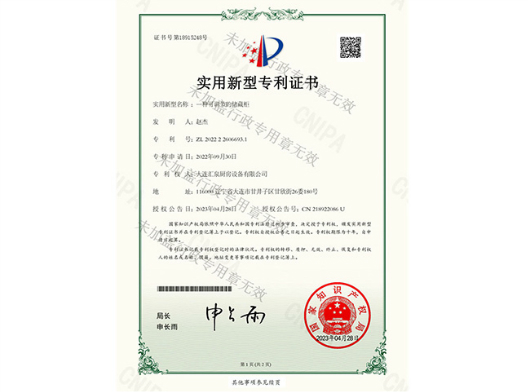 實用新型專利證書一種可調節(jié)的儲藏柜