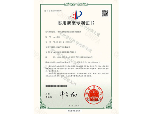 實用新型專利證書一種高效型油煙自助分離的排煙罩
